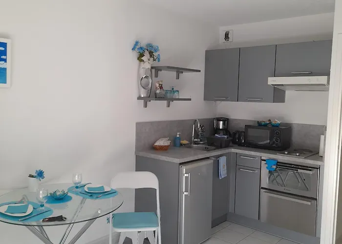 - ❓Is there a kitchen available at this beachfront Privilege Plage apartment for guest use?Yes, this beachfront Privilege Plage apartment is furnished with a kitchenette and offers an oven and a dishwasher as well.